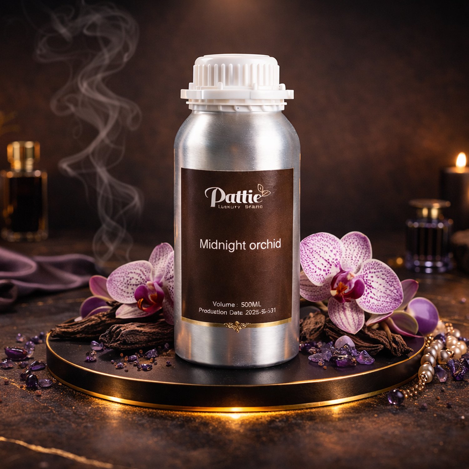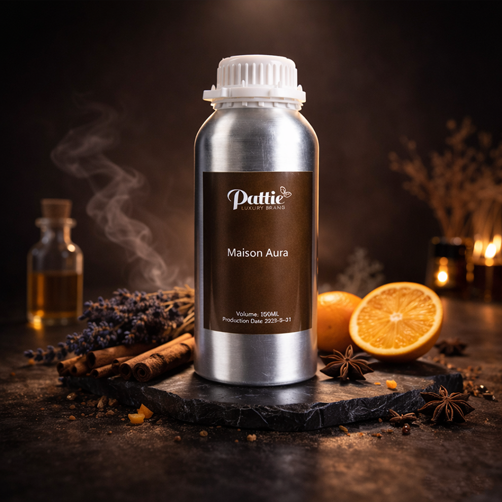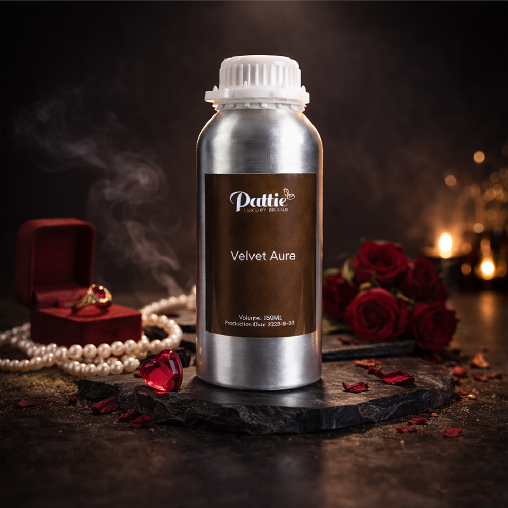A premium collection of fragrance oils in sleek metal containers, including Ruby, Velvet Ember, Oud Royale, Dior Essence, Midnight Orchid, Serene Harmony, Maison Aura, Chanel Noir, Black Empire, Velvet Aura, Opulence, and Horizon. Each scent blends floral, spicy, and musky notes for an unforgettable aromatic experience, perfect for gifting or daily elegance.