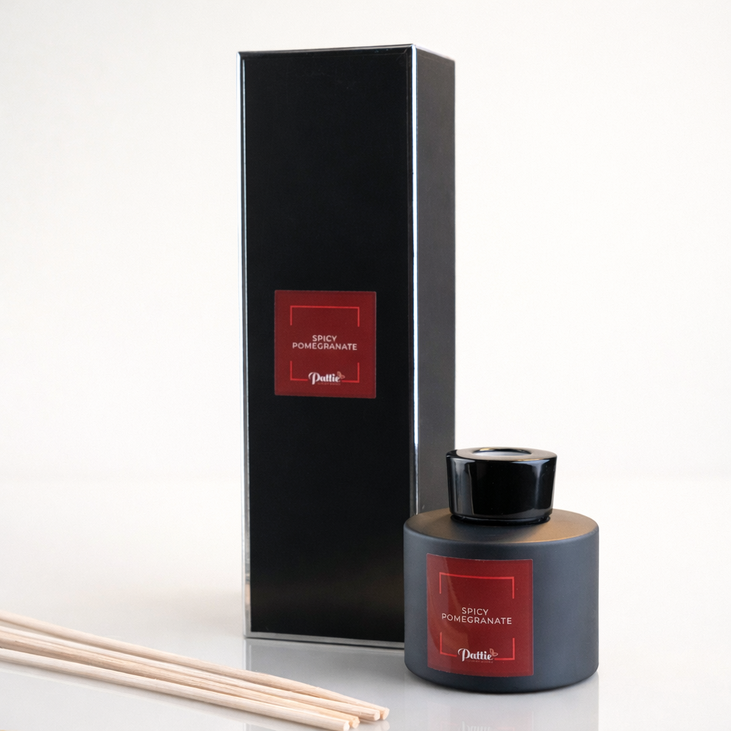 The Spicy Pomegranate Diffuser blends juicy pomegranate with warm spice notes.